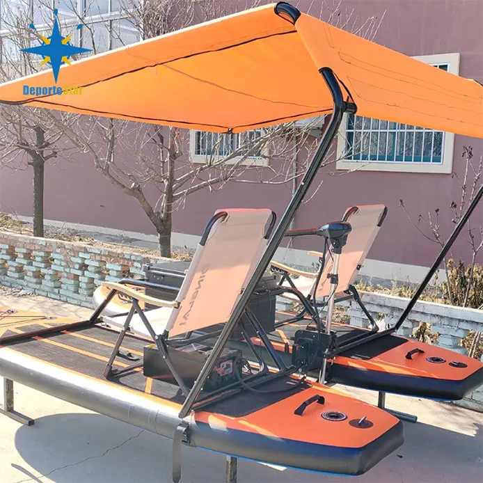 1. Du thuyền Catamaran Thiết kế độc đáo: - Ván lướt sóng ống nhựa PVC (miếng đệm dây) vật liệu nhẹ khung nhôm hoặc khung thép không rỉ. Giúp thúc đẩy sự ổn định và khả năng cơ động trên mặt nước. Chiếc catamaran bơm hơi này có thể có hình dáng hợp lý giúp giảm khả năng chống nước.